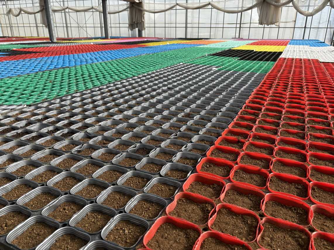 ポットに土を入れたり、土の入ったポットをハウスへ運んだりと、各部署がフル稼働で作業を進めています。