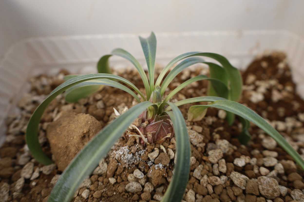 マドンナリリー ロゼット状の葉が上に伸びてきています。