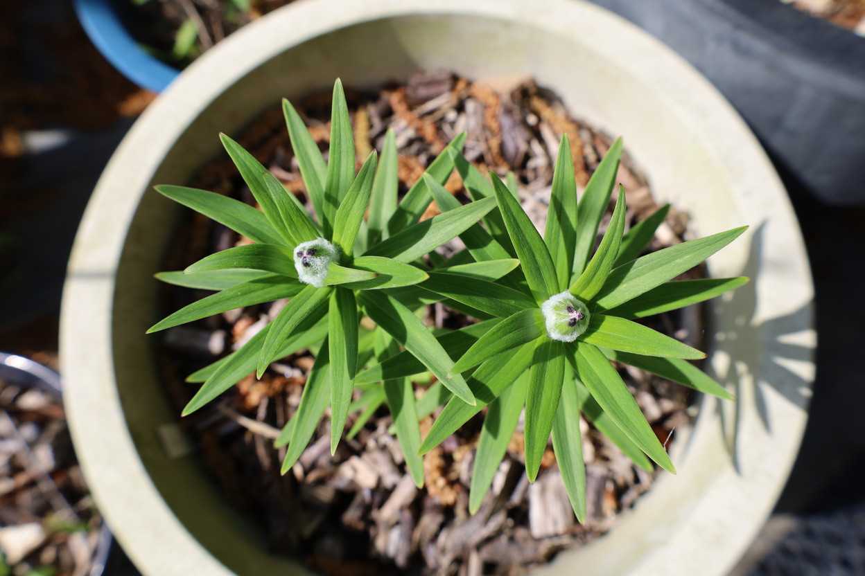 開花するユリは蕾を付けています。